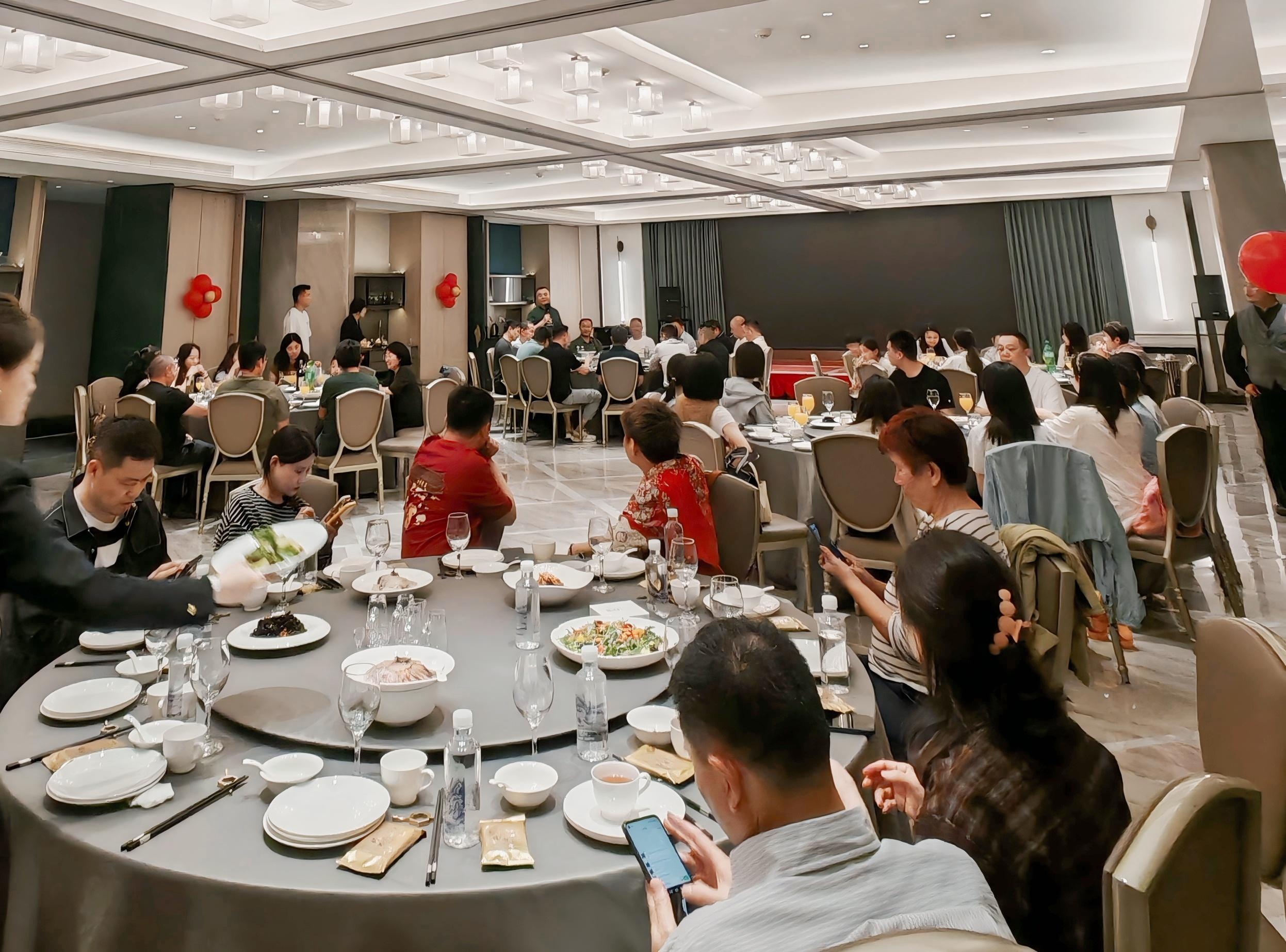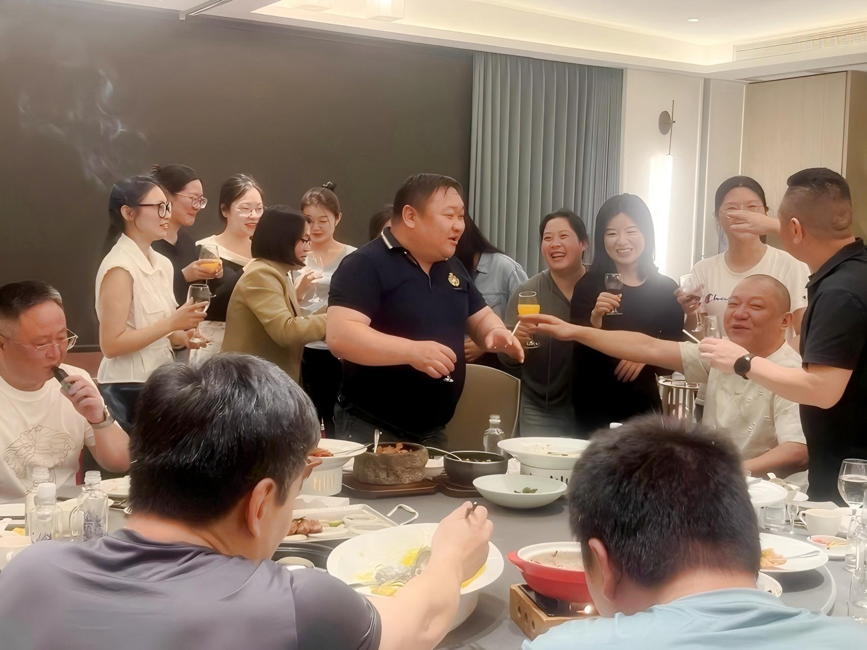 隨后,豐富多樣的美食紛紛上桌,推杯換盞間,交流聲、歡笑聲此起彼伏。各部門員工相互分享工作中的趣事和生活點(diǎn)滴,平日里因工作繁忙而疏于交流的同事們借此機(jī)會拉近了彼此距離。