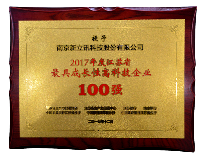 2017年江蘇省“最具成長性高科技企業(yè)”評選活動于2017年12月1日完成。組委會通過對企業(yè)各項技術(shù)評審、答辯考察評審等程序,遴選出100家創(chuàng)新實力強(qiáng),成長速度快的科技型企業(yè)。對此類企業(yè)給予相關(guān)科技、金融信貸等優(yōu)惠政策,推動企業(yè)更快更好優(yōu)化發(fā)展。新立訊秉持科技創(chuàng)新、引領(lǐng)時代的工作宗旨和發(fā)展觀念,在此次評選中贏得了組委會的高度認(rèn)可,成為2017年江蘇省“最具成長性高科技企業(yè)”百強(qiáng)之一。