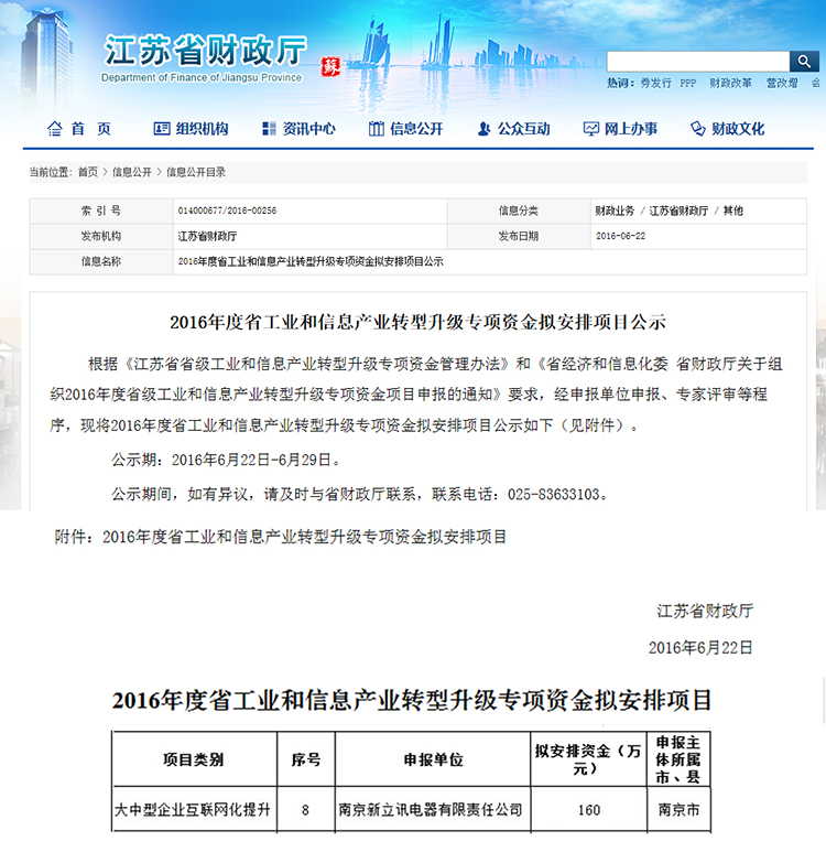 九月入秋,新立訊再次蟾宮折桂。近日,在省市區(qū)各級領(lǐng)導(dǎo)的關(guān)心和支持下,新立訊股份獲得了江蘇省2016年度省級工業(yè)和信息產(chǎn)業(yè)轉(zhuǎn)型升級及專項資金160萬科技補貼。