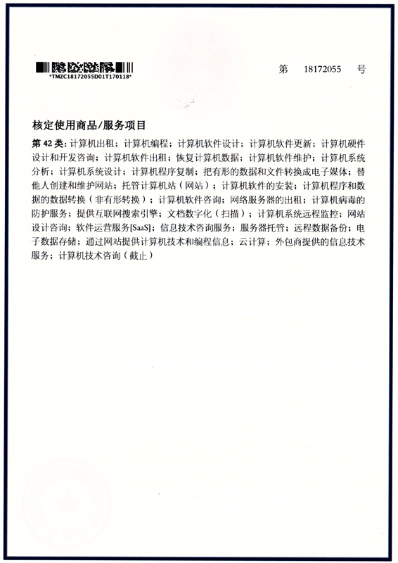 “龜兔賽跑”商標(biāo)注冊號為“18172055”,同時該商標(biāo)明確標(biāo)示核定使用商品/服務(wù)項目共計32項,具體包括:計算機(jī)出租;計算機(jī)編程;計算機(jī)軟件設(shè)計;計算機(jī)軟件更新;計算機(jī)硬件設(shè)計和開發(fā)咨詢;計算機(jī)軟件出租;恢復(fù)計算機(jī)數(shù)據(jù);計算機(jī)軟件維護(hù);計算機(jī)系統(tǒng)分析;計算機(jī)系統(tǒng)設(shè)計;計算機(jī)程序復(fù)制;把有形的數(shù)據(jù)和文件轉(zhuǎn)換成電子媒體;替他人創(chuàng)建和維護(hù)網(wǎng)站;托管計算機(jī)站(網(wǎng)站);計算機(jī)軟件的安裝;計算機(jī)程序和數(shù)據(jù)的數(shù)據(jù)轉(zhuǎn)換(非有形轉(zhuǎn)換);計算機(jī)軟件咨詢;網(wǎng)絡(luò)服務(wù)器的出租;計算機(jī)病毒的防護(hù)服務(wù);提供互聯(lián)網(wǎng)搜索引擎;文檔數(shù)字化(掃描);計算機(jī)系統(tǒng)遠(yuǎn)程監(jiān)控;網(wǎng)站設(shè)計咨詢;軟件運維服務(wù)[SaaS];信息技術(shù)咨詢服務(wù);服務(wù)器托管;遠(yuǎn)程數(shù)據(jù)備份;電子數(shù)據(jù)存儲;通過網(wǎng)站提供計算機(jī)技術(shù)咨詢。