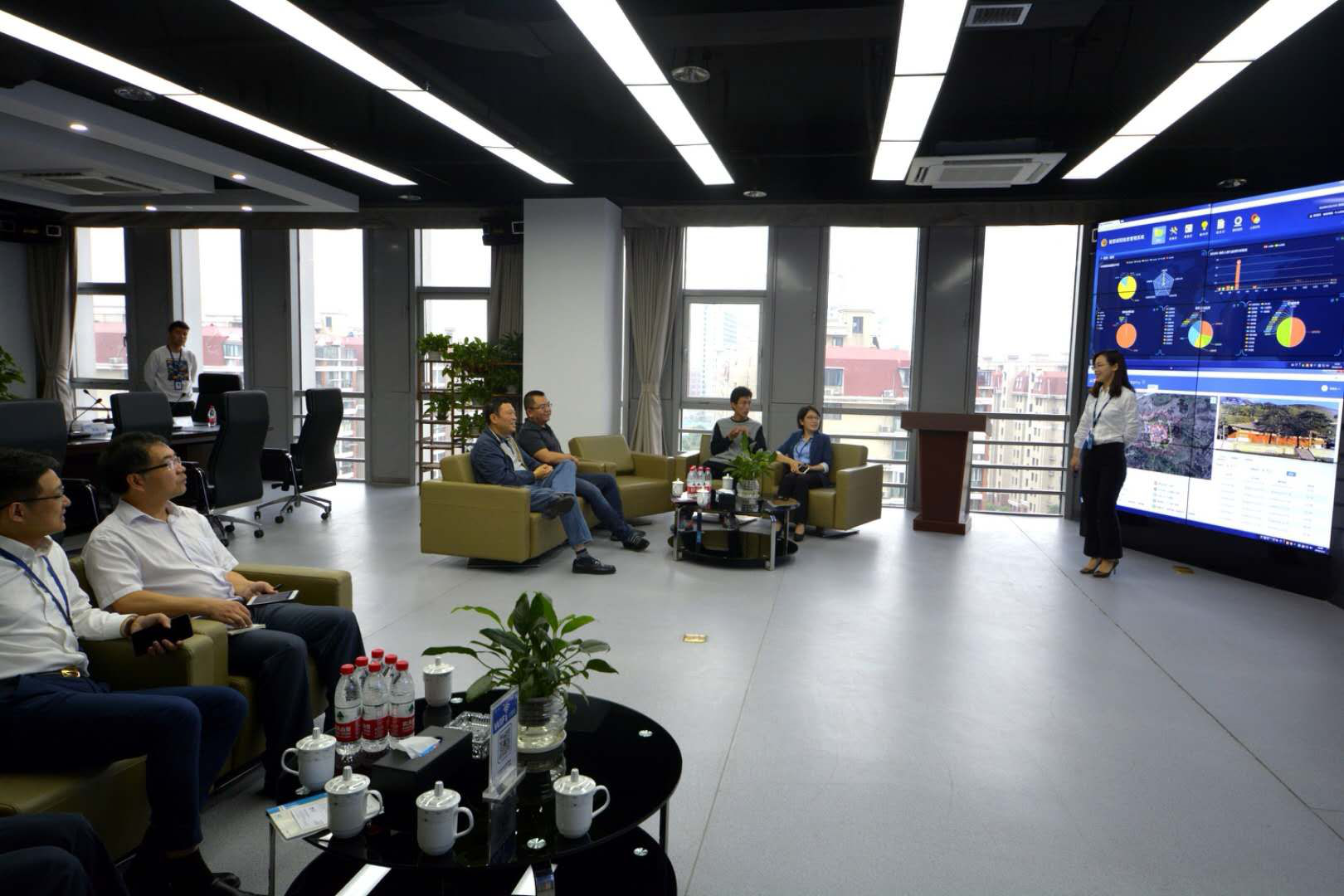 新立訊董事長毛霖?cái)y公司高管陪同艾部長等領(lǐng)導(dǎo)參觀了新立訊總部研發(fā)中心、數(shù)據(jù)中心、運(yùn)營管理中心等職能部門,了解了新立訊在既往發(fā)展歷程中取得的專利成果及企業(yè)榮譽(yù),同時也了解了公司的核心競爭力與數(shù)據(jù)應(yīng)用挖掘能力。通過現(xiàn)場匯報(bào)講解、PPT演示、宣傳片等多種方式從組織架構(gòu)、業(yè)務(wù)領(lǐng)域、技術(shù)實(shí)力、發(fā)展戰(zhàn)略、黨建活動等多方面對新立訊進(jìn)行介紹,展示了我司大數(shù)據(jù)云平臺、信息系統(tǒng)集成、數(shù)字視覺設(shè)計(jì)以及裝飾與機(jī)電一體化四個事業(yè)部的項(xiàng)目成果。向領(lǐng)導(dǎo)們詳細(xì)匯報(bào)了新立訊近年來的發(fā)展情況以及新立訊下一步的戰(zhàn)略布局和走向。