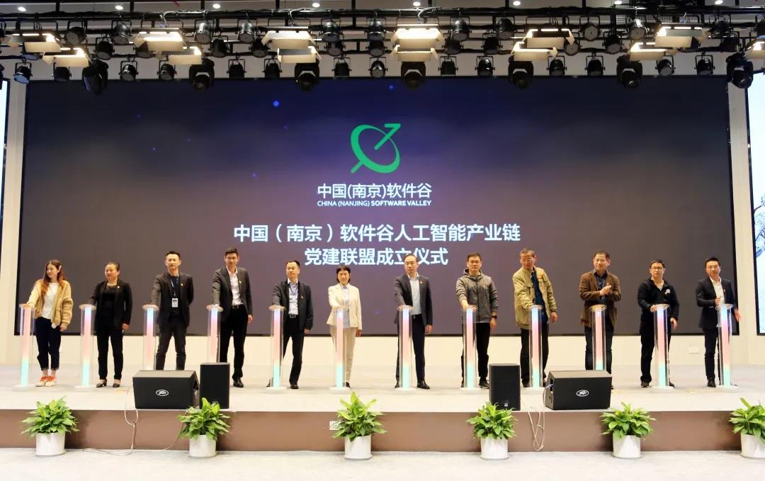 軟件谷人工智能產(chǎn)業(yè)鏈黨建聯(lián)盟成立(左二新立訊黨員代表)