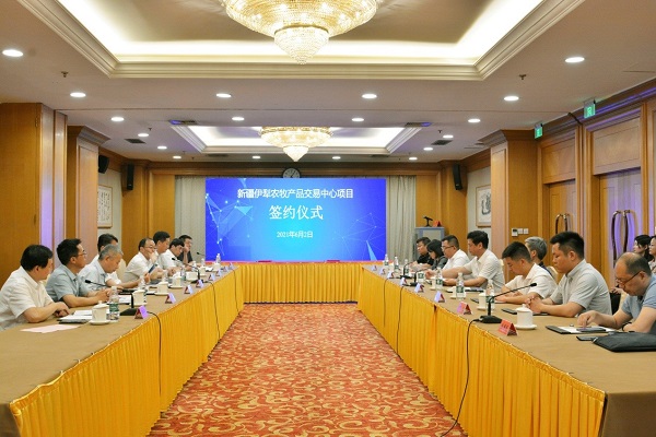 2021年6月2日,新立訊股份與伊寧市人民政府在江蘇南京西康賓館隆重舉行簽約儀式,雙方就新疆伊犁農(nóng)牧產(chǎn)品交易中心項(xiàng)目現(xiàn)場(chǎng)簽約。伊犁州黨委副書(shū)記、自治州代州長(zhǎng)哈丹·卡賓,伊犁州黨委副書(shū)記、江蘇援伊前方指揮部黨委書(shū)記、總指揮朱斌,伊犁州黨委常委、州紀(jì)委書(shū)記、監(jiān)委主任丁邦文,伊寧市委副書(shū)記、市長(zhǎng)卡米力江·玉蘇甫江,中國(guó)(南京)軟件谷管委會(huì)主任孫中華與江蘇省、南京援疆工作組、南京市發(fā)改委等相關(guān)領(lǐng)導(dǎo),新立訊董事長(zhǎng)毛霖及公司高管余治、李偉、陳凱等共同出席簽約儀式。伊寧市委副書(shū)記、南京援疆工作組組長(zhǎng)鄭曉明主持。