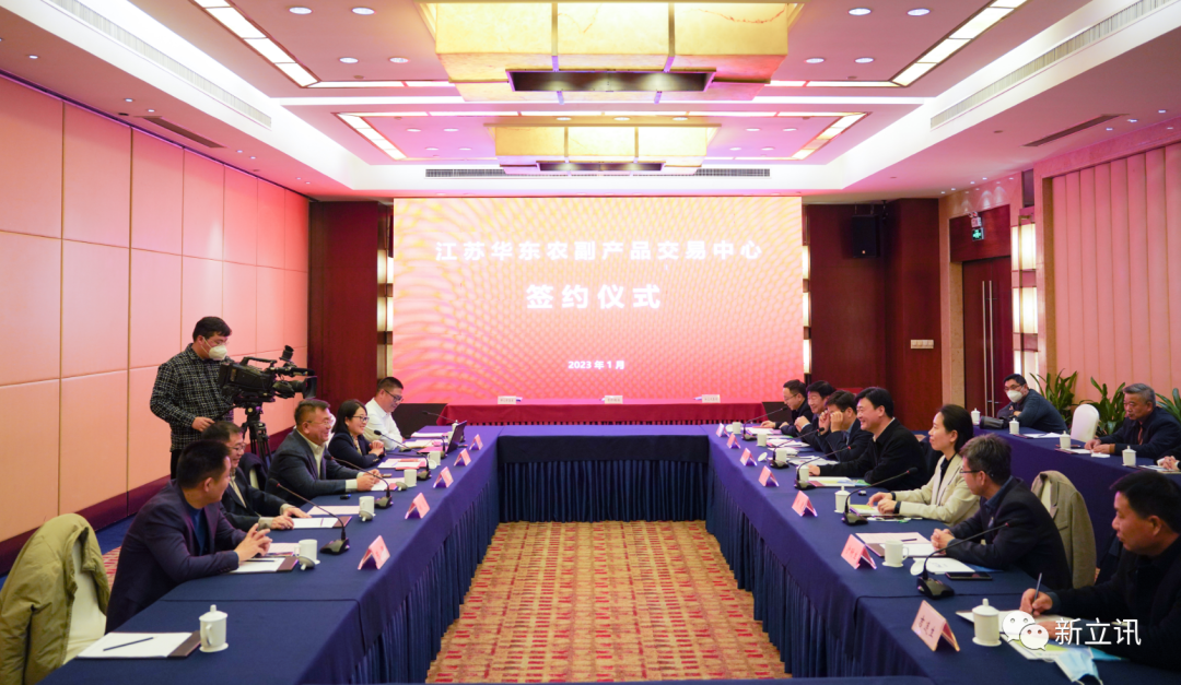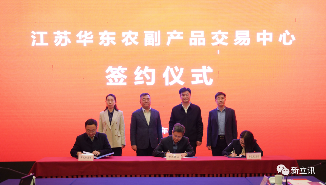 2023年1月10日,“江蘇華東農(nóng)副產(chǎn)品交易中心簽約儀式”在江蘇鹽城市鹽都區(qū)驛都金陵大酒店隆重舉行。鹽都區(qū)委副書(shū)記、區(qū)長(zhǎng)馬正華,鹽城市供銷(xiāo)合作總社黨委書(shū)記、理事會(huì)主任朱雯,鹽都區(qū)委副書(shū)記、副區(qū)長(zhǎng)朱偉,新立訊董事長(zhǎng)(兼青海農(nóng)林牧商品交易中心董事長(zhǎng))毛霖,鹽城市供銷(xiāo)合作總社黨委委員、理事會(huì)副主任沙附生,鹽都區(qū)農(nóng)業(yè)農(nóng)村局、區(qū)供銷(xiāo)社、區(qū)國(guó)控集團(tuán)等相關(guān)負(fù)責(zé)同志共同出席簽約儀式。