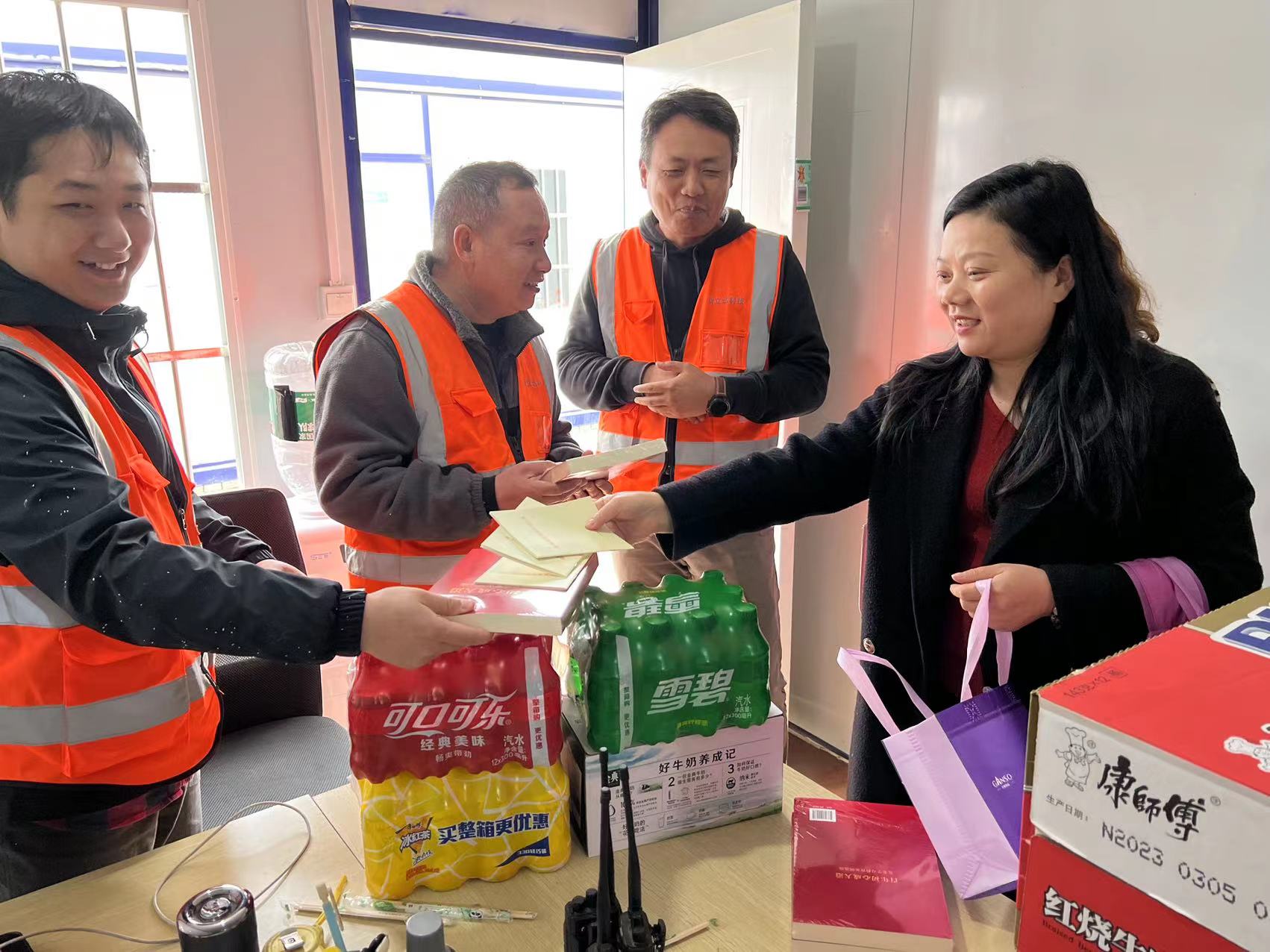 為了表達(dá)對(duì)長(zhǎng)期在項(xiàng)目施工地駐扎的人員的辛苦和付出,新立訊黨支部以及工會(huì)前往施工現(xiàn)場(chǎng)參與了一次慰問(wèn)活動(dòng)。